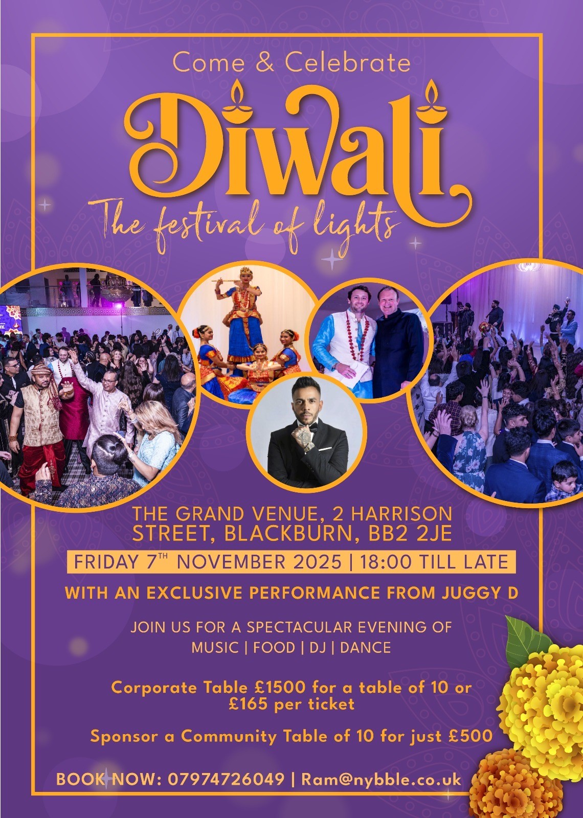 If you want to elevate your brand and be part of this celebration of all that is good in Lancashire, we would love for you to consider purchasing tickets and joining us, not only to celebrate Diwali but to stand in unity with the communities that make Lancashire shine.